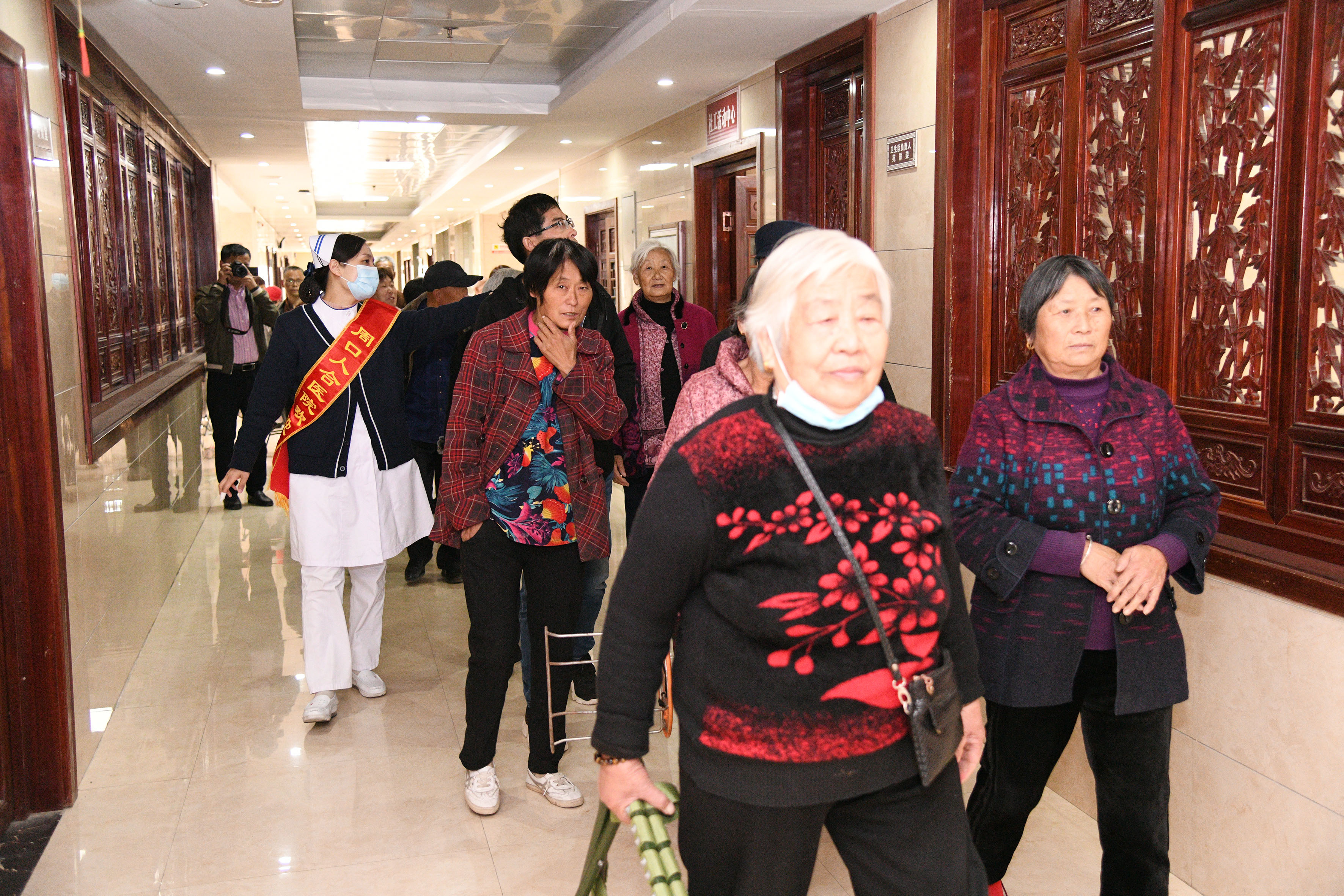 大戲唱到11時(shí)結(jié)束了,公寓的老人們回房休息,而前來(lái)聽(tīng)?wèi)虻纳鐓^(qū)老姐妹進(jìn)入公寓參觀,體驗(yàn)人合公寓的生活。參觀的老人們排著隊(duì),從一樓娛樂(lè)形式多樣的多功能大廳、餐廳,到二樓的賓館式標(biāo)間住處、泡腳房、健身房、康復(fù)理療師、中醫(yī)室、棋牌娛樂(lè)室、社工服務(wù)中心等,設(shè)施齊全、干凈整潔。