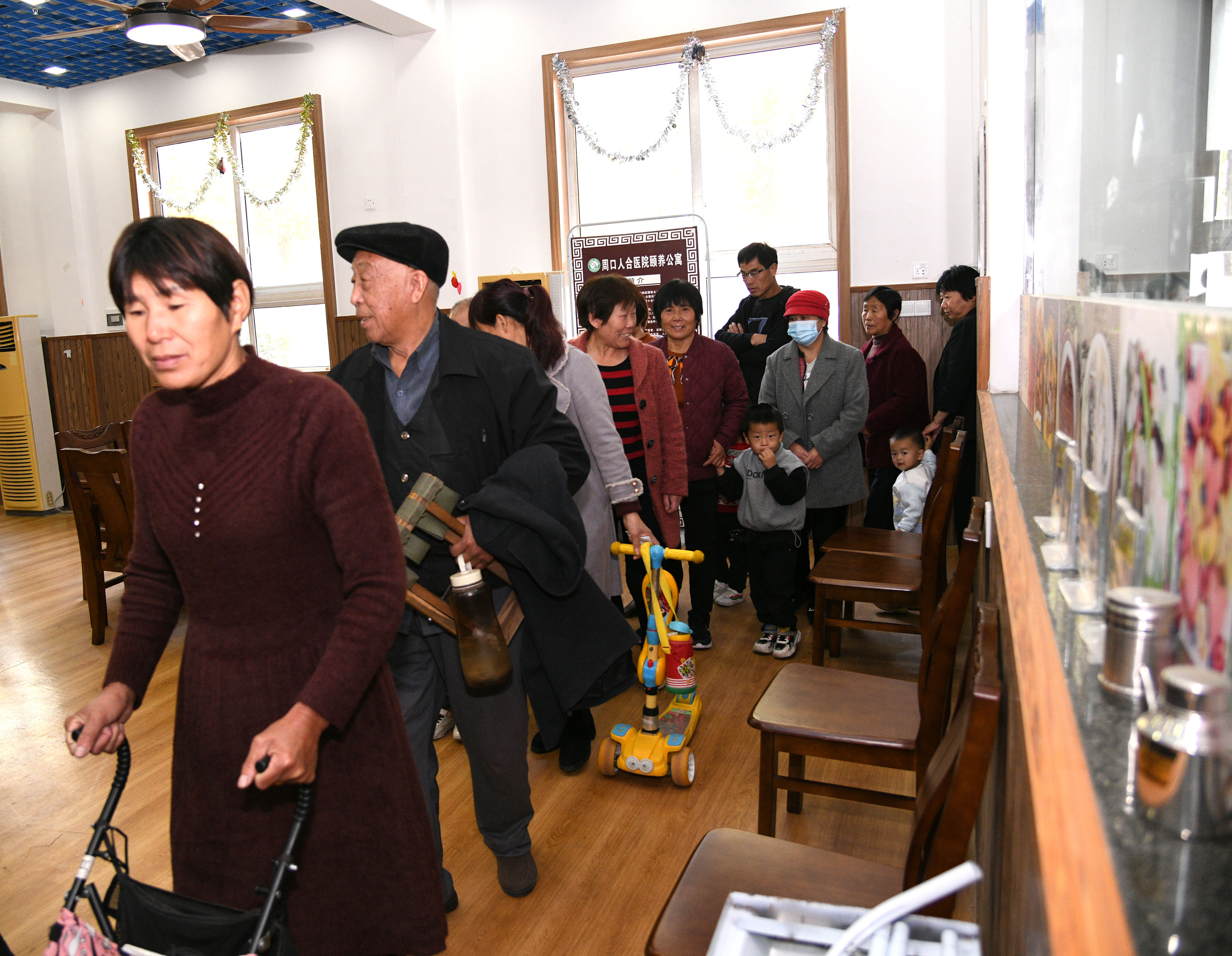 10月25 日,商水人合頤養(yǎng)公寓大紅的愛(ài)老敬老的條幅如彩帶紛披,掛著院內(nèi),像過(guò)年一樣的喜慶。老年人穿戴喜慶,服務(wù)人員早早地起床,幫助老人起床、準(zhǔn)備好早點(diǎn)、收拾好房間、檢查老人是否按時(shí)吃藥。早點(diǎn)的花樣很多,廚房換著法兒給老人改善飲食,等老人收拾停當(dāng),服務(wù)人員推著飯車(chē),將飯送到老人的房間。