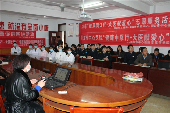 為普及健康素養(yǎng)基本知識與技能,倡導健康文明的生活方式,提高百姓的健康意識和自我保健能力,10月28日下午,由周口市衛(wèi)健委、川匯區(qū)衛(wèi)健委組織,市中心醫(yī)院、區(qū)健康教育所等單位承辦的“健康周口行·大醫(yī)獻愛心”志愿服務(wù)隊走進川匯區(qū)衛(wèi)生計生監(jiān)督所,為區(qū)衛(wèi)生計生監(jiān)督所的干部職工送上健康科普知識講座。