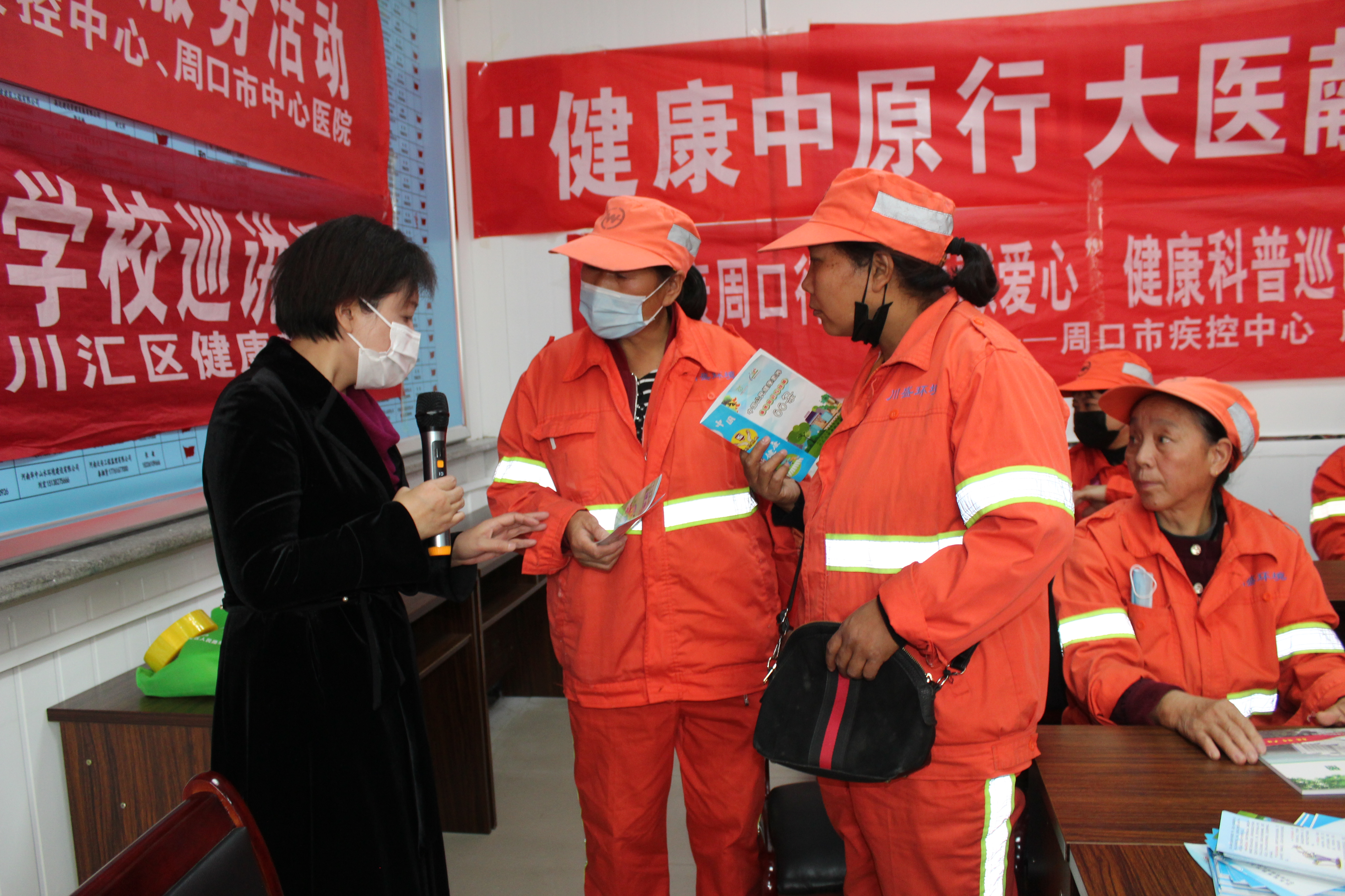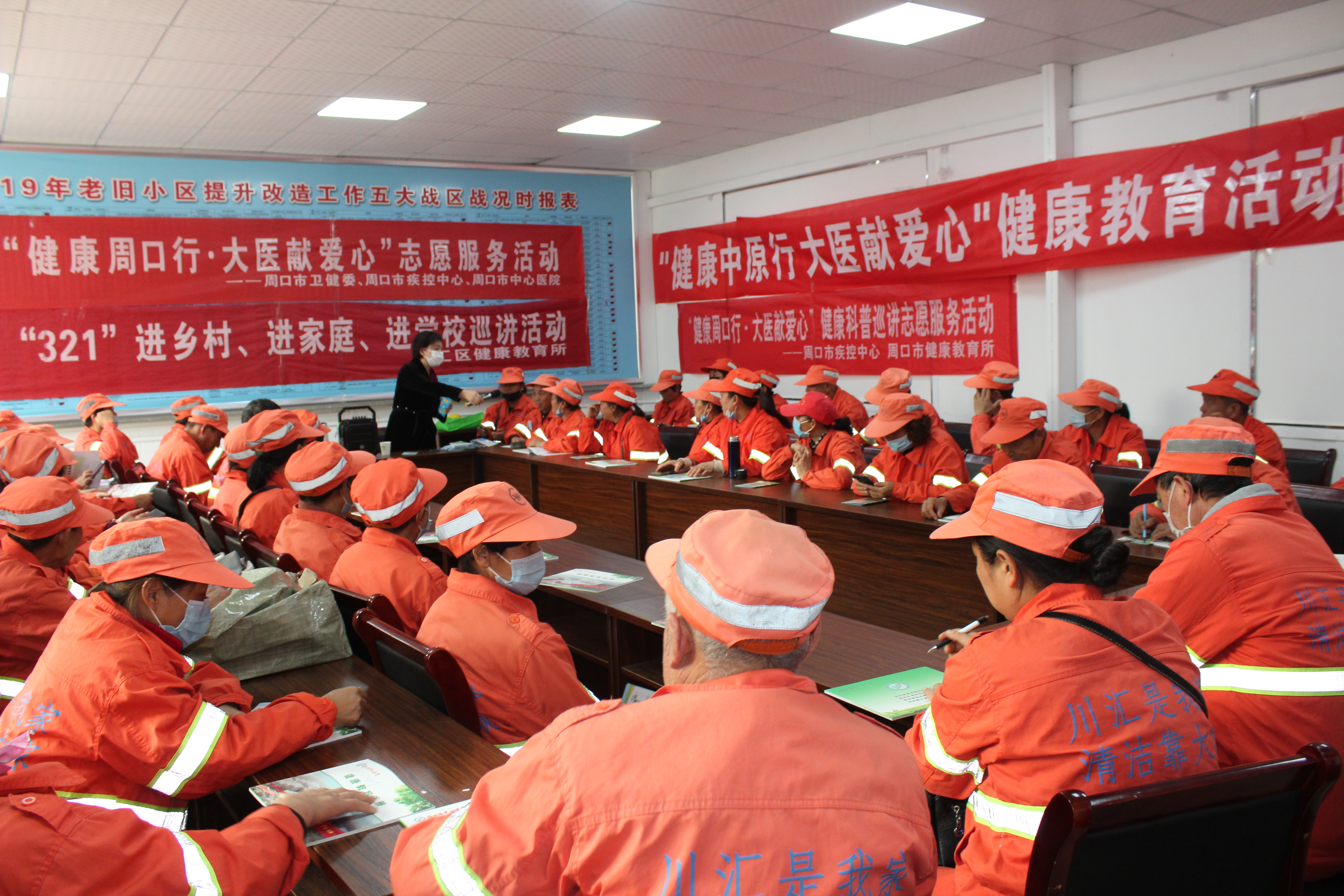 10月29日下午,市、區(qū)衛(wèi)健委組織市中心醫(yī)院、區(qū)健康教育所等單位開展的“健康中周口行、大醫(yī)獻愛心”健康扶貧志愿服務(wù)專項行動走進川盛環(huán)境公司,為100余名環(huán)衛(wèi)工人開展了“慢性病防治健康素養(yǎng)”知識講座,普及健康生活知識和技能。