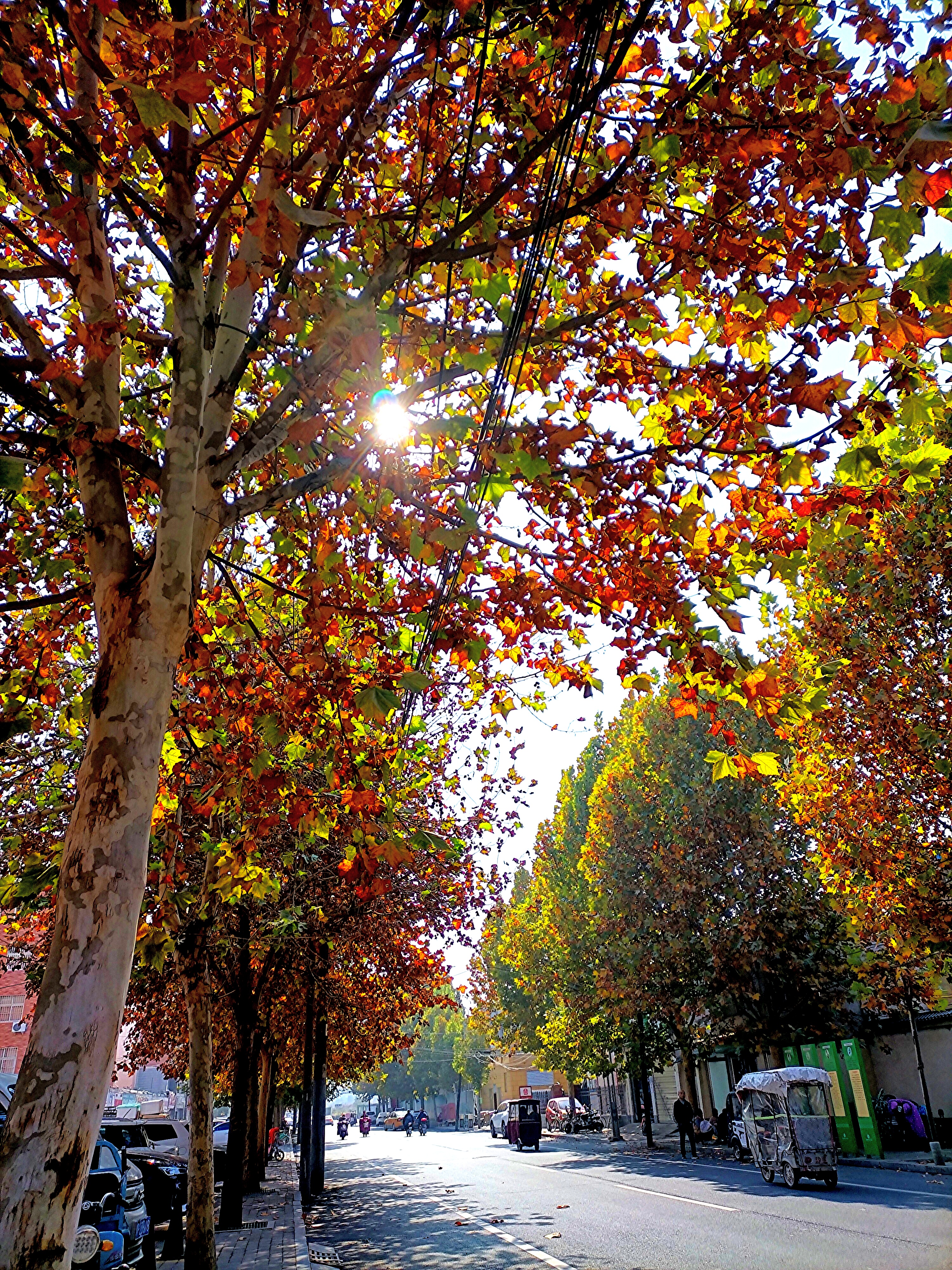 文昌大道路邊在陽光的映照下格外美麗的梧桐樹
