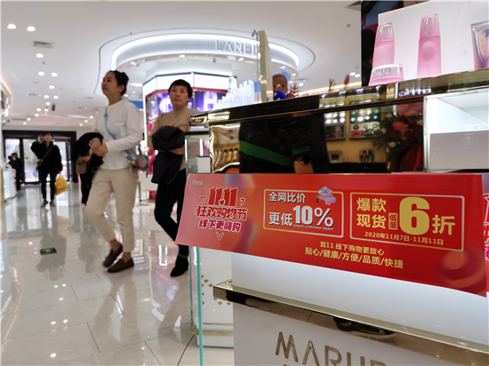 今天是“雙十一”,周口街頭不少商場、實體門店紛紛推出促銷優(yōu)惠活動。今年 雙“十一”電商打折,線下實體店也當仁不讓,使盡招數(shù)進行銷售。記者在中心城區(qū)看到,某大型商場策劃了“11.11狂歡購物節(jié)”活動,打出了“全網(wǎng)比價更低10%”的橫幅,還有的實體店更是明碼標價進行優(yōu)惠活動。②18