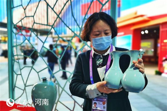 在非遺展示區(qū),河南帶來的汝瓷、絞胎瓷、懷山藥古法炮制技藝,引得客商們駐足關(guān)注。汝瓷燒制技藝代表性傳承人王振芳帶來了200多件展品,希望通過進(jìn)博會,讓世界更了解中國名瓷,河南名瓷。