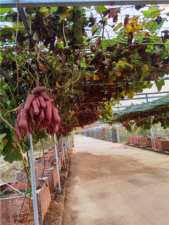 西華縣農(nóng)科所積極開展“空中結(jié)薯”試驗(yàn)種植研究,并取得成功?!翱罩薪Y(jié)薯”采取嫁接技術(shù),選用旋花科植物牽牛作砧木,脫毒薯苗作接穗嫁接而成,嫁接成活后栽到土壤里,搭建棚子,加強(qiáng)薯苗水肥管理,每株插一根小竹木桿,促進(jìn)薯苗快速生長上棚,在棚上吊花盆,盆內(nèi)放蛭石,生長到掤上的薯秧壓到花盆里,加強(qiáng)水肥管理。90天結(jié)薯,進(jìn)入10月份把花盆去掉。該技術(shù)打破傳統(tǒng)栽培方式,主要為公園、科技園區(qū)、農(nóng)業(yè)生態(tài)觀光園、家庭庭院內(nèi)培植,有很好的科研價(jià)值、觀賞價(jià)值和農(nóng)業(yè)推廣價(jià)值。周口日?qǐng)?bào)·周道客戶端記者李鳳霞 攝