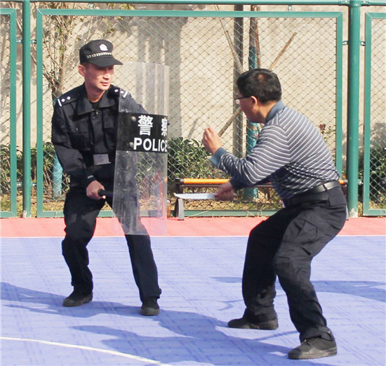 在法警大隊(duì)訓(xùn)練場(chǎng),考核組一行觀看了擒敵拳和警械具使用、處置突發(fā)事件等實(shí)戰(zhàn)應(yīng)用。在處突演練過程中,5人組成的處突小組模擬各種突發(fā)情況進(jìn)行實(shí)戰(zhàn)演練,法警們反應(yīng)迅速,執(zhí)法規(guī)范,短短數(shù)秒內(nèi)就將"暴徒"制服。