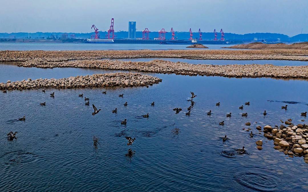 在枝江,取締非法船塢、碼頭,關(guān)停砂石廠,進行生態(tài)復綠,昔日荒蕪的岸坡,正在蝶變成一條既可見碧水浩蕩東流,又可見飛鳥嬉戲灘涂的濱江生態(tài)廊道;
