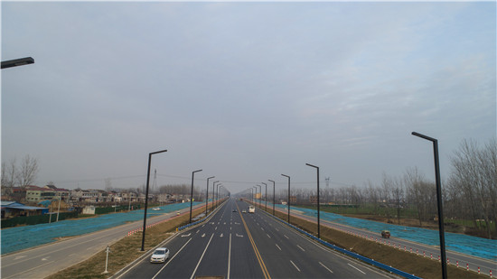 升級改造后的周淮路快速通道,不僅寬闊平坦、視野更遠(yuǎn),而且還新增了慢車道、人行通道、防護欄板、公交港灣、景觀渠和綠色長廊等,尤其是目前施工已接近尾聲的照明工程,燈桿隨路而行、整齊劃一、色彩厚重,如同行道樹在恭迎游客和游子。②9周口日報·周道客戶端記者杜洪亮 房杰 攝