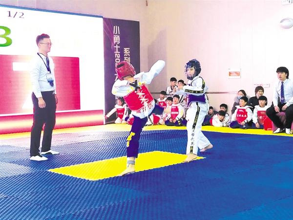 12月27日,由河南驕勇體育文化傳播公司主辦的川匯區(qū)小勇士2020大眾跆拳道系列爭霸賽在中心城區(qū)一家酒店多功能廳舉行。共有來自9個校區(qū)的110 名跆拳道健兒對 14塊金牌展開了角逐。賽場上,小小少年英姿颯爽,你來我往,奮力拼搏,通過競技的運動形式培養(yǎng)了參賽者堅韌不拔的意志品質。記者 王俊祥 通訊員 焦萬全 攝