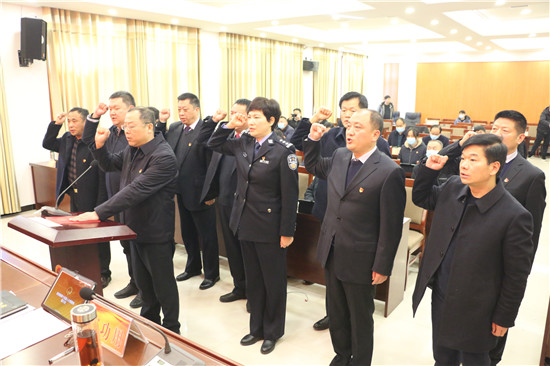 會議經(jīng)過分組和集中審議,以電子投票表決的方式通過《扶溝縣人民政府關(guān)于2020年財政預(yù)算調(diào)整方案(草案)的報告》《扶溝縣人民政府關(guān)于2019年度縣本級財政預(yù)算執(zhí)行和其他財政收支審計工作報告中指出問題落實整改情況的報告》和扶溝縣人民政府相關(guān)部門負(fù)責(zé)人的人事任免事項。隨后,與會人員起立奏唱國歌,新任命人員面向國徽進行憲法宣誓。
