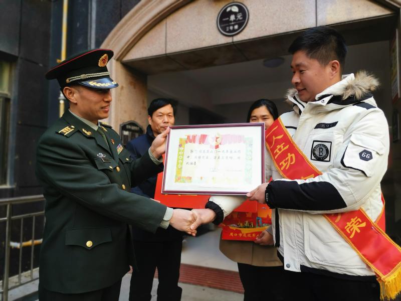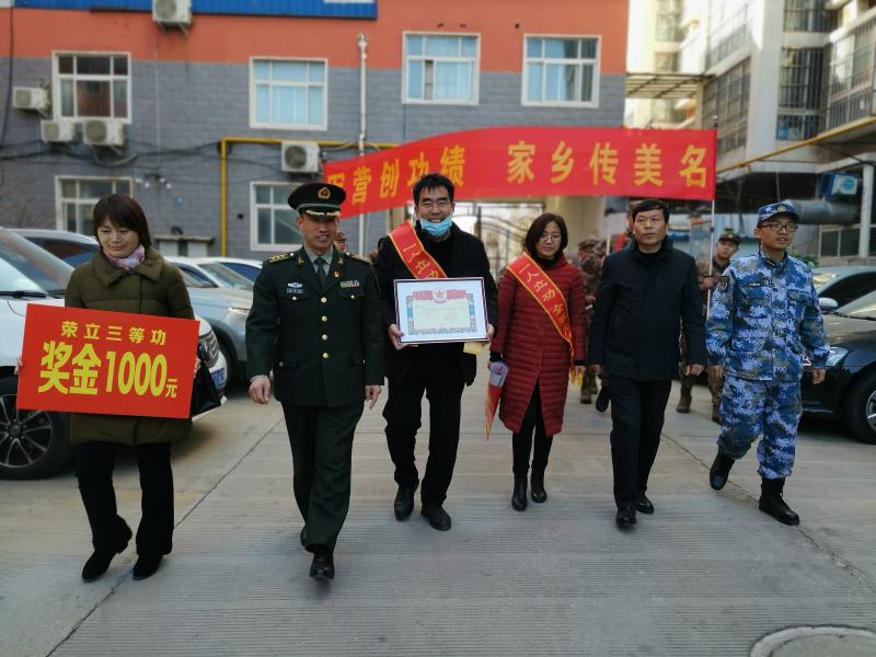 “真是沒想到,現(xiàn)在部隊還專門將喜報送到家里,這是我們全家的榮耀,感謝部隊為我們培養(yǎng)了這么優(yōu)秀的兒子!”1月12日下午,川匯區(qū)人武部部長陳繼芳在區(qū)退役軍人事務局人員的陪同下,來到和諧花園小區(qū)將立功授獎喜報送到的現(xiàn)役軍人董波的家里,看到兒子榮立三等功的大紅喜報,董波父母臉上樂開了花。據悉,當天下午共送出4份三等功喜報。