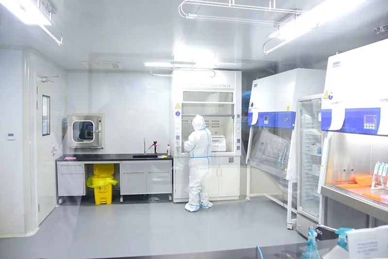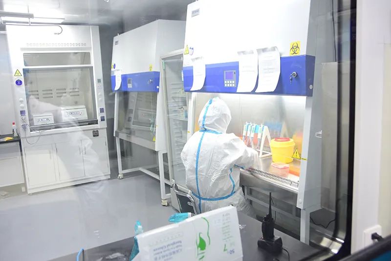 該檢驗室嚴格按照四區(qū)兩通道建筑標準,擁有全自動核酸提取儀、實時熒光擴增儀、生物安全柜、通風櫥、離心機等先進設備,檢測人員均經過了嚴格的規(guī)范化培訓和資質認證。實驗室參照國家衛(wèi)健委有關規(guī)定和檢測工作流程,嚴格做好標本收集、儲存、運輸環(huán)節(jié)的安全防護,確保檢測對象、采樣和運送人員安全,杜絕交叉感染。