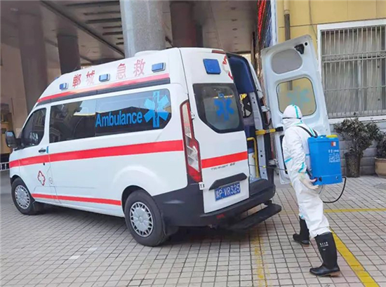 發(fā)熱患者經(jīng)過之處,醫(yī)院專職消毒人員和各科室工作人員立即對沿途道路、儀器進(jìn)行全方位多角度消毒滅殺。