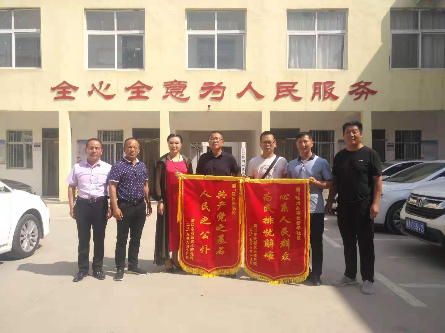1月14日上午,一品觀天下小區(qū)業(yè)主代表們興高采烈地為川匯區(qū)陳州辦事處、六一社區(qū)分別送去了錦旗,以感謝陳州辦及相關(guān)單位、干部多方努力、克服困難、積極協(xié)調(diào),解決了困擾一品觀天下業(yè)主10余年拿不到房產(chǎn)證的憂心事。