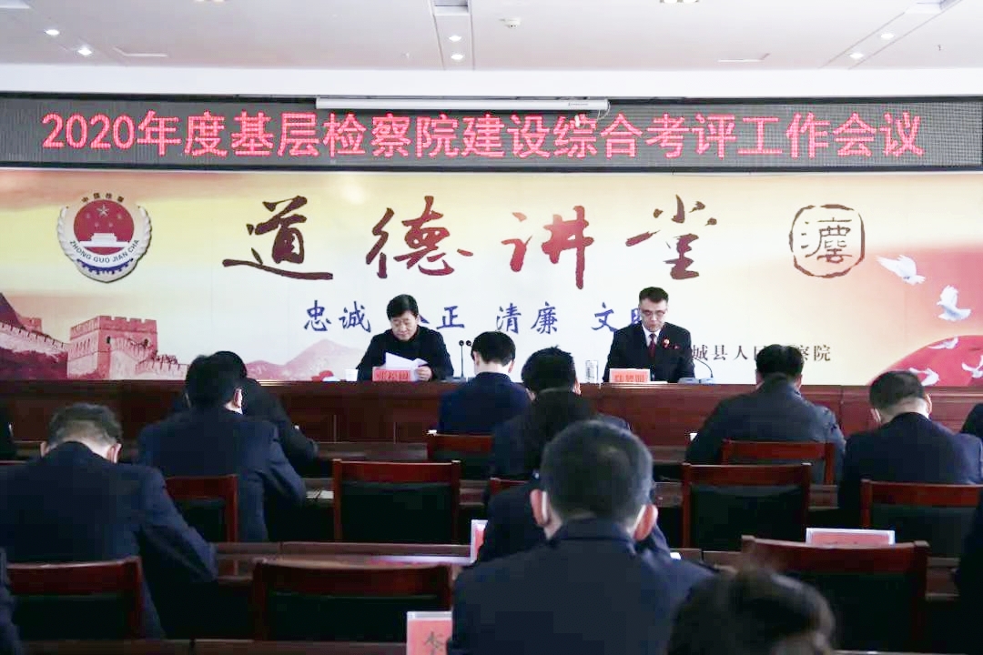 1月14日,鄲城縣檢察院召開2020年度基層檢察院建設(shè)綜合考評工作會(huì)議,市院第一考評組組長、專職檢委會(huì)委員張松樹等出席,院黨組書記、代檢察長陸智明主持。全體干警參加。