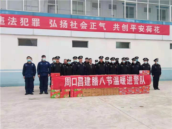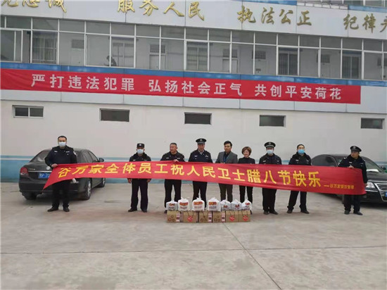 當(dāng)天一大早,昌建集團(tuán)便派人送來(lái)豬蹄,八寶粥等慰問(wèn)物資。午飯時(shí)間,谷萬(wàn)家餐飲又為堅(jiān)守在基層一線的民警、輔警送來(lái)了愛心午餐和臘八粥。兩家愛心企業(yè)對(duì)派出所在轄區(qū)的工作表示肯定,對(duì)派出所全體民警輔警舍小家為大家的奉獻(xiàn)精神表示敬意。
