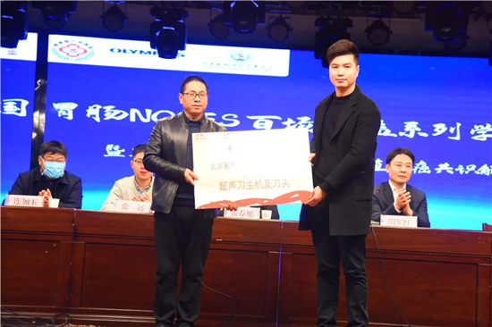 楊雨旺書記介紹了鄲城縣人民醫(yī)院胃腸外科的基本情況以及在近年發(fā)展中取得的長(zhǎng)足進(jìn)步。胡軍紅教授在致辭中指出,NOSES作為一種微創(chuàng)中的微創(chuàng)手術(shù),是一種醫(yī)患共贏的好技術(shù),是未來(lái)微創(chuàng)外科發(fā)展的趨勢(shì)和方向之一。他對(duì)不辭勞苦開(kāi)展公益學(xué)術(shù)講座,推廣NOSES理念和技術(shù)的各位專家表示感謝,同時(shí)預(yù)祝系列學(xué)術(shù)活動(dòng)圓滿成功。 中國(guó)胃腸NOSES聯(lián)盟向鄲城縣人民醫(yī)院贈(zèng)送了《胃腸手術(shù)策略與操作圖解》等專業(yè)書籍20本和超聲刀一套。