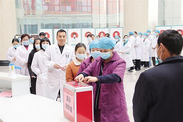 1月5日上午9時30分,捐款活動正式開始,醫(yī)院領(lǐng)導(dǎo)積極帶頭,全院職工紛紛參與,一些來院體檢、就診的社會人士也慷慨解囊,大愛無疆、扶危濟困的感人一幕在醫(yī)院上演。