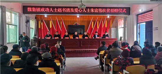 1月29日,天氣乍暖還寒,魏集鎮(zhèn)政府人頭攢動(dòng),喜氣洋洋,一片熱鬧的景象。內(nèi)蒙古希拉穆仁旅游置業(yè)開(kāi)發(fā)有限公司董事長(zhǎng)、內(nèi)蒙古楊子照明鋼桿制造有限責(zé)任公司董事長(zhǎng)、內(nèi)蒙古周口商會(huì)會(huì)長(zhǎng)趙書(shū)清和愛(ài)心人士朱富偉一行,帶著整整兩卡車(chē)米、面、油共計(jì)八萬(wàn)元生活物資,回到家鄉(xiāng)魏集鎮(zhèn)開(kāi)展扶貧濟(jì)困活動(dòng),在嚴(yán)寒的冬日給魏集鎮(zhèn)困難群眾帶來(lái)了溫暖和祝福。縣政協(xié)主席孫培忠,縣委常委、宣傳部長(zhǎng)李本磊出席活動(dòng)。魏集鎮(zhèn)黨委書(shū)記衛(wèi)春忙,鎮(zhèn)長(zhǎng)劉艷光參加活動(dòng)。