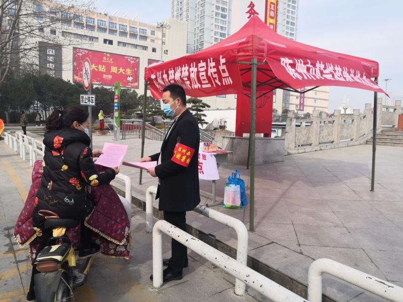2月1日上午,川匯區(qū)陳州辦事處組織工作人員在五一文化廣場(chǎng)設(shè)置煙花爆竹禁燃禁放宣傳點(diǎn),通過發(fā)放宣傳頁、小喇叭播放音頻等方式,向過往市民宣傳煙花爆竹禁燃禁放、環(huán)境保護(hù)相關(guān)知識(shí),積極營(yíng)造煙花爆竹禁燃禁放氛圍,確保市民度過一個(gè)干凈整潔、文明祥和、平安有序的春節(jié)。記者 張廉明 攝