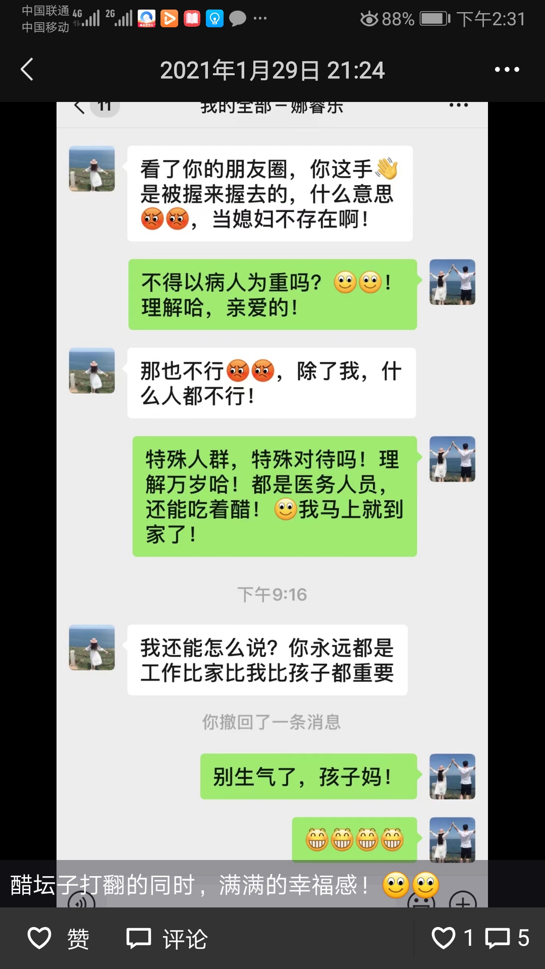 張軍杰憨厚地告訴記者,后來,他老婆看到他握著產(chǎn)婦的手的視頻后,還“吃醋”了。經(jīng)過張軍杰的情景還原,老婆為他的職業(yè)精神大大點(diǎn)贊,也十分自豪地在自己朋友圈轉(zhuǎn)發(fā)了老公的這個(gè)小視頻。