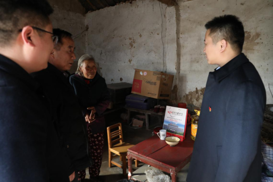 座談結(jié)束后,慰問小組在村支部書記帶領(lǐng)下逐戶登門看望高齡困難老人?!吧眢w好不好?”“還有什么困難需要幫助解決?”張祖軍在老人家中親切地和老人聊著家常,叮囑老人們要注意保重身體、注意飲食衛(wèi)生,并為他們送上食用油、春聯(lián)、口罩等生活必需品和節(jié)日的祝福。