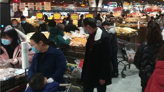 春節(jié)日益臨近,我市中心城區(qū)的各大超市充滿了濃濃的年味兒。1月26日,記者走進(jìn)一家超市看到,各類商品擺滿了貨架,糧油、糖品、干貨、生鮮、熟食、水果等品種豐富,一應(yīng)俱全,過年的氛圍十分濃厚。