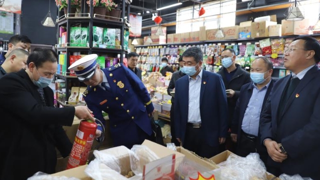 為落實河南省煙花爆竹禁售禁放工作電視電話會議和全市煙花爆竹禁售禁放暨春節(jié)期間污染防治工作會議精神,做好春節(jié)期間火災(zāi)預(yù)防、煙花爆竹禁售禁放工作,確保節(jié)日期間物資供應(yīng)充足、市場秩序持續(xù)穩(wěn)定,2月9日,周口港區(qū)黨委書記孫鵬前往轄區(qū)居民社區(qū)、市場督導(dǎo)春節(jié)期間各項保障工作落實情況。港區(qū)黨委委員杜廣賢、公安分局局長康群泉陪同。