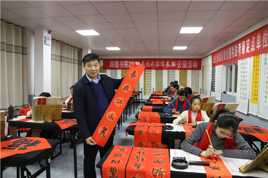 “春聯(lián)是我們中華民族獨(dú)有的文化符號,象征著喜慶,蘊(yùn)含著吉祥。我為我家寫春聯(lián)公益活動(dòng)具有很強(qiáng)的廣泛性、群眾性、公益性,送祝福、亮成績與弘揚(yáng)傳承中華優(yōu)秀傳統(tǒng)文化相結(jié)合,在學(xué)生心中樹立了文化自信?!标悈顷懶牢康卣f。