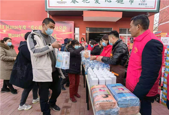 “現(xiàn)在,我們幫忙清理小區(qū)垃圾、打掃衛(wèi)生,都能換取積分兌換禮物。這是激勵(lì)我們多做好事兒??!”2月3日上午,在由川匯區(qū)區(qū)委組織部、區(qū)社區(qū)建設(shè)管理局、區(qū)供銷合作社、荷花路街道辦事處主辦的2020年度“愛(ài)心超市”積分兌換暨2021年愛(ài)心捐贈(zèng)儀式上,郵政小區(qū)居民王新民等27名社區(qū)志愿者兌換了毛巾、香皂、消毒液等禮品,使他們對(duì)“好人有好報(bào)”這句話有了更深的認(rèn)識(shí)。