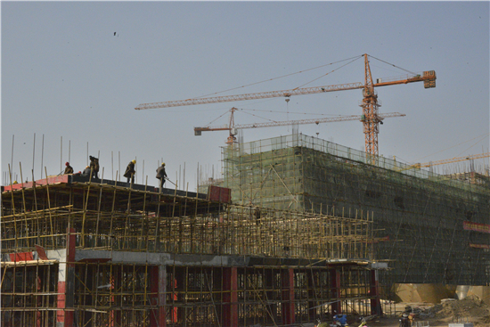 2月8日臘月26日,在項(xiàng)目施工工地上,工人們正忙個不停:已經(jīng)封頂?shù)母郀t上工人們正在對最后的設(shè)備進(jìn)行安裝、即將峻工的儲料棚工地上工人們正在澆筑混凝土……工地上一派繁忙,塔吊長長的“手臂”來回?cái)[動。