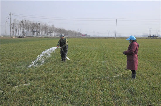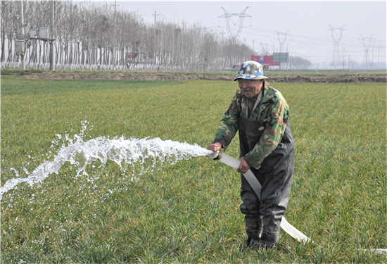 春節(jié)前夕,豫東大地旱象抬頭,全國超級產(chǎn)糧大縣商水縣農(nóng)業(yè)部門一邊聘請市、縣專業(yè)技術(shù)人員實(shí)地指導(dǎo),一邊動員農(nóng)民迅速投入以抗旱澆麥、化學(xué)除草為重點(diǎn)的麥田管理工作。許多農(nóng)民匆匆買完年貨就開始下地抗旱澆麥,隨處可見農(nóng)民運(yùn)水泵、擺管子、疏溝渠的身影,萬頃麥田一派繁忙景象。