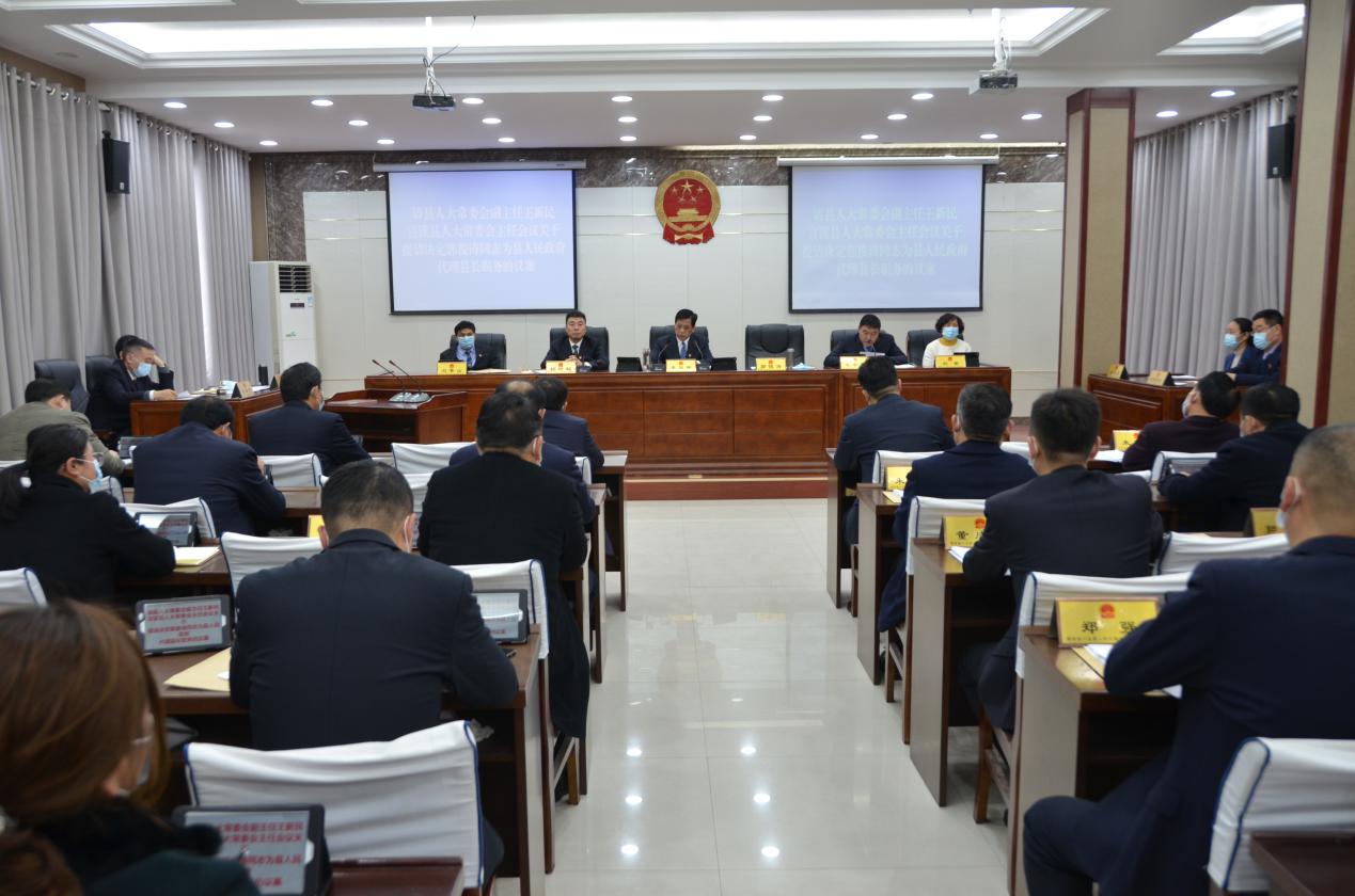 會(huì)上,李國際主任向新任命代理縣長(zhǎng)郭俊濤同志頒發(fā)了任命書。隨后,郭俊濤面向國徽,左手緊按《憲法》,右手舉拳,進(jìn)行了莊嚴(yán)的憲法宣誓儀式。