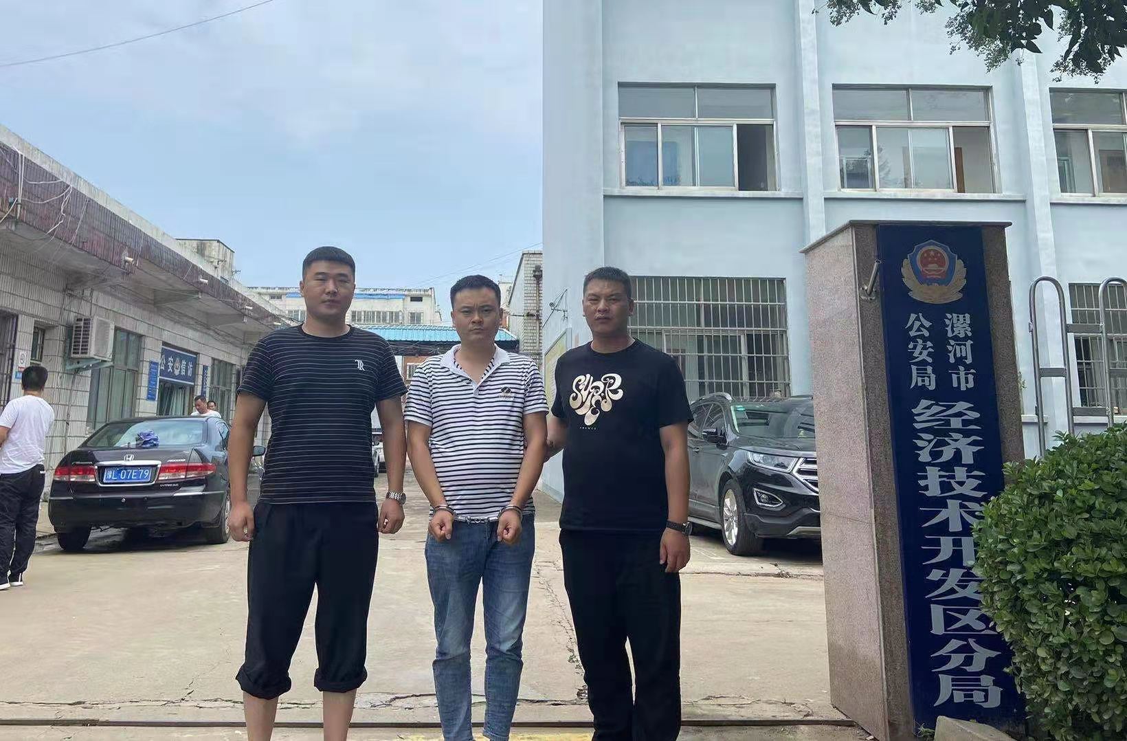 張寧博(右)和同事在漯河辦案。(資料圖片)