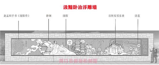 在縣委、縣政府綜合大樓東側(cè)的核心形象段,配合鄲城行政中心打造莊嚴(yán)、大氣氛圍的同時(shí),對(duì)鄲城歷史文化進(jìn)行了集中展示,包括鄲城的歷史沿革,鄲城的發(fā)展理念、歷史故事等。其中調(diào)水渠西側(cè)以現(xiàn)有人民廣場(chǎng)對(duì)應(yīng)的綠地為基礎(chǔ),設(shè)置了較多的歷史文化節(jié)點(diǎn)。如調(diào)水渠新華路橋頭北側(cè)的廉政文化廣場(chǎng),講述了漢朝名臣汲黯的故事。汲黯為人耿直,直諫廷諍,親政愛民,敢于承擔(dān)責(zé)任,漢武帝劉徹稱其為“社稷之臣”。汲黯廉政廣場(chǎng)建設(shè)在此處更有著深遠(yuǎn)的意義,它一方面提醒老百姓要了解歷史、敬畏先賢,同時(shí)也激勵(lì)著鄲城縣的各級(jí)黨員干部要在習(xí)近平新時(shí)代中國(guó)特色社會(huì)主義思想引領(lǐng)下,“不忘初心、牢記使命、廉潔奉公、一心為民”。