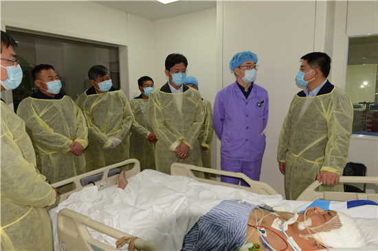 經(jīng)過一段時間的治療,張寧博的身體各項指標都明顯好轉(zhuǎn),但尚未脫離危險,仍在醫(yī)院重癥監(jiān)護室救治。2月18日~19日,省公安廳黨委委員、副廳長、政治部主任高萬象,扶溝縣委書記孫紅偉等先后到鄭州大學第一附屬醫(yī)院ICU重癥監(jiān)護室,代表省公安廳黨委和扶溝縣委、縣政府看望慰問張寧博及其家屬。慰問中,他們要求醫(yī)護人員將生命放在第一位,不惜一切代價,全力救治,精心治療。
