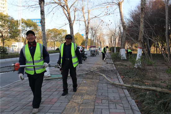 2月21日,城鄉(xiāng)一體化示范區(qū)城管局幾名市政管理人員在修剪周口大道兩旁的行道樹。據(jù)了解,通過一年的生長,行道樹衍生了許多無用枝條,如果對這些無用枝條不進行修剪,勢必影響今年的長勢。目前,道路兩邊的行道樹開始發(fā)芽,正是一年當(dāng)中修剪的有利時機。城鄉(xiāng)一體化示范區(qū)城管局每天出動三班技術(shù)人員,對轄區(qū)內(nèi)的行道樹進行修剪。