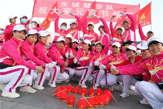 動感的音樂、統(tǒng)一的步伐、整齊的隊伍……2月21日傍晚,在東城新時代文明實踐中心廣場,一群身著粉色隊服的隊員著實引人注目,他們就是東城健步隊的隊員?!霸?jié)即將到來,我們新年第一走就從今天開始?!苯衲?8歲的隊長張艷平告訴記者,去年是艱難的一年,希望在新的一年里一切順利,牛氣沖天。