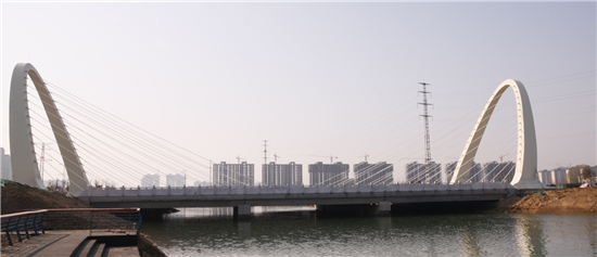 遠(yuǎn)遠(yuǎn)望去,松花江路跨幸福河大橋宛如大鵬展翅欲飛。據(jù)了解,大橋設(shè)計寓意為“沖出云霄”,橋體以現(xiàn)代無脊索斜拉橋作為裝飾構(gòu)件,橋梁主塔+拉索造型恰如振翅高飛的雄鷹,有著“大鵬一日同風(fēng)起,扶搖直上九萬里”的象征意義,表示周口市正蓄勢待發(fā),抓住機(jī)遇,一飛沖天,加入全國城市發(fā)展的快車道。③5