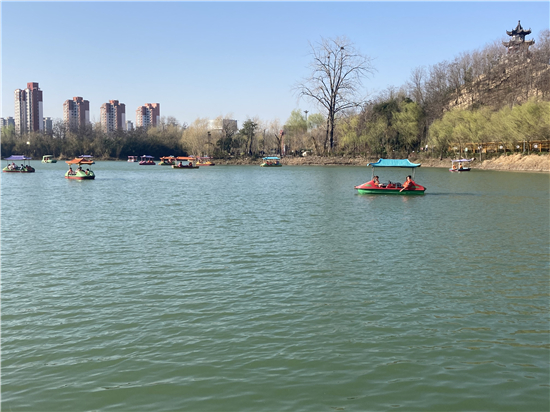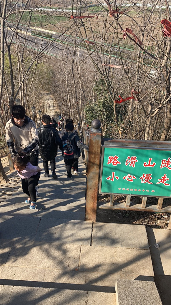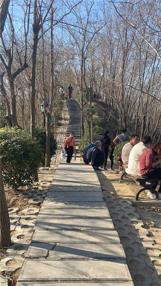 在槐香湖邊,年輕人三五結(jié)伴登上游艇,“坐船能到湖那邊的小島,島上也有槐樹(shù),拍照肯定特別漂亮。”返鄉(xiāng)大學(xué)生把七星島上的景色留在了自己的相機(jī)里。七星島與槐香湖相連的橋上,人潮擁擠,有的人席地而坐,觀賞著橋上的風(fēng)景。當(dāng)問(wèn)道在外市工作的王先生游玩感受時(shí),他回答到:“年后上班沒(méi)時(shí)間鍛煉身體,今天我把全家人帶來(lái)登山,呼吸一下新鮮空氣?!雹?