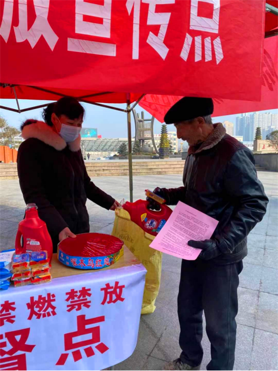 廣泛宣傳,營造氛圍。通過發(fā)放彩頁、懸掛條幅、轉(zhuǎn)發(fā)微信群朋友圈等形式做好基礎(chǔ)宣傳,曉以利害,形成市民“不想放”的思想;通過城管宣傳車、社區(qū)小喇叭移動宣傳隊、沿街商鋪電子屏滾動播放標(biāo)語等形式多方位、“固定+流動”的360°無死角宣傳覆蓋,形成轄區(qū)“不能放”的氛圍;在五一廣場、潁河沿岸等重點區(qū)域設(shè)置禁燃禁放值班點、煙花爆竹兌換點,引導(dǎo)群眾拿出積存煙花爆竹兌換香皂、洗衣液等生活用品,并結(jié)合夜間綜治巡邏隊,“白+黑”全天候做好巡邏值班工作,形成群眾“不敢放”的環(huán)境。