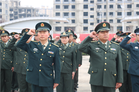2月26日下午14時(shí),西華縣人武部營區(qū)內(nèi),鮮紅的黨旗迎風(fēng)飄揚(yáng)。來自全縣17個(gè)鄉(xiāng)鎮(zhèn)、5個(gè)城區(qū)辦事處武裝部的全體專武干部黨員與該部現(xiàn)役干部、文職、職工黨員共計(jì)60余人集聚這里,隆重集體過“政治生日”。