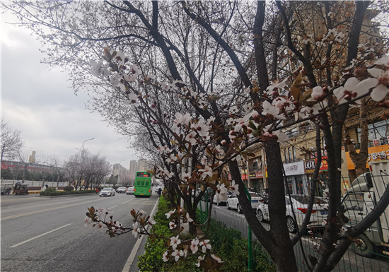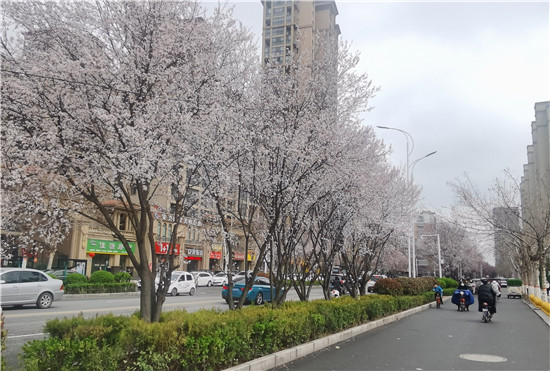 3月1日,慶豐街道兩邊的紫葉李花開(kāi)似雪,紫葉李貫穿整個(gè)慶豐街,形成了一道靚麗的風(fēng)景。盛開(kāi)的紫葉李花瓣兒呈白色或粉色,微風(fēng)拂過(guò),花瓣兒飄散在空中,為過(guò)往的車(chē)輛下起了晴天里的花瓣雨。