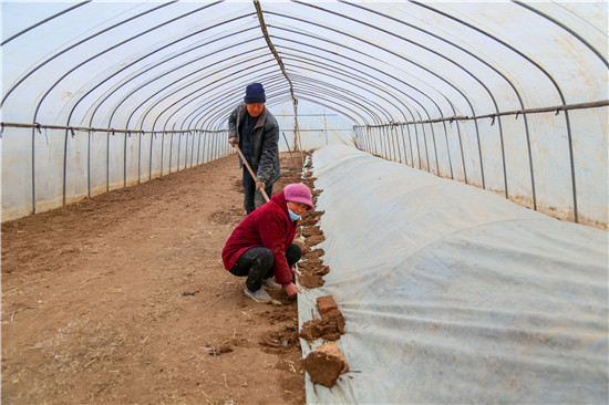 “我們宋狄樓村原先就有人種黑皮冬瓜,以前不懂技術(shù),也沒(méi)形成規(guī)模,冬瓜育苗、生長(zhǎng)都是靠天吃飯,碰上不好的光景,只能眼睜睜地看著冬瓜秧病死,爛在地里一點(diǎn)辦法也沒(méi)有,大半年的功夫全浪費(fèi)了,很多人也都不愿意種了,只有十幾戶每年種一點(diǎn),收獲的季節(jié)到處跑著賣,根本形不成規(guī)?!崩虾贿呎f(shuō)著,一邊和老伴鏟土壓棚,“現(xiàn)在不一樣了,駐村第一書(shū)記李樹(shù)行來(lái)了之后,頭一年就鼓勵(lì)我們冬瓜種植,讓我們村有種植經(jīng)驗(yàn)的農(nóng)戶集中起來(lái)一塊交流育苗、生長(zhǎng)管理經(jīng)驗(yàn),還請(qǐng)來(lái)了縣里農(nóng)業(yè)局的專家進(jìn)行專門指導(dǎo),給我們免費(fèi)提供種苗,免費(fèi)投了農(nóng)業(yè)保險(xiǎn),一下子把大家的勁頭提上來(lái)。2015年我種了3畝,一畝能掙七八千,還領(lǐng)了3750塊錢的補(bǔ)貼,看著種冬瓜有錢賺,村里種冬瓜的人也逐漸多了起來(lái),現(xiàn)在種植10畝以上的就有一百多戶,賣冬瓜也不發(fā)愁了,村東頭就有收購(gòu)市場(chǎng),也不用來(lái)回跑了,價(jià)錢給的也不低?!痹?jié)前后正是冬瓜育苗的關(guān)鍵期,胡永祥兩口身上沾滿泥土,雖然累在身上卻甜在心里。