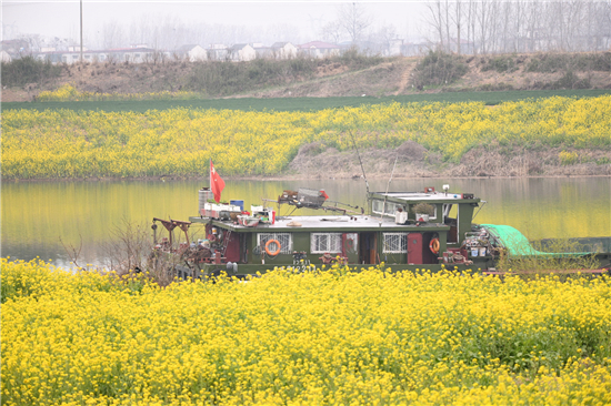 近日,盡管天氣乍暖還寒,沙潁河周口上游段油菜花已競相開放。蜿蜒碧水兩畔,金黃色的油菜花燦如錦緞。輪渡行進(jìn)在碧水和花錦之間,如走進(jìn)畫廊。②8