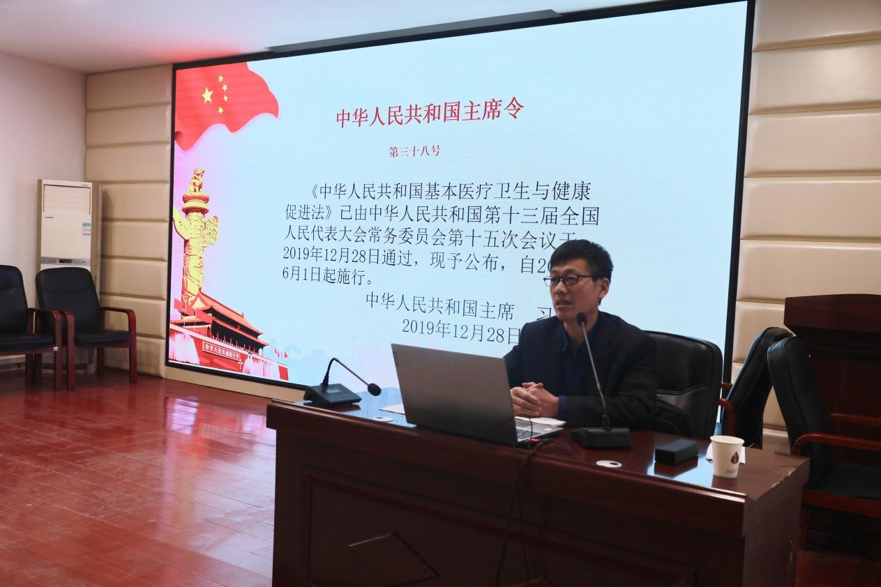 副主任陳玉峰宣讀縣衛(wèi)健委關(guān)于《中華人民共和國(guó)基本醫(yī)療衛(wèi)生與健康促進(jìn)法》宣傳貫徹活動(dòng)方案;副主任孫忠圍繞“健康中國(guó),法治保障”,分別從《衛(wèi)健法》的基本醫(yī)療衛(wèi)生服務(wù)、醫(yī)療衛(wèi)生機(jī)構(gòu)、醫(yī)療衛(wèi)生人員、健康促進(jìn)、法律責(zé)任等五個(gè)方面進(jìn)行了系統(tǒng)學(xué)習(xí)?!缎l(wèi)健法》是為了發(fā)展醫(yī)療衛(wèi)生與健康事業(yè),保障公民享有基本醫(yī)療衛(wèi)生服務(wù),提高公民健康水平,推進(jìn)健康中國(guó)建設(shè),根據(jù)憲法,制定的法律。作為衛(wèi)生健康領(lǐng)域第一部基礎(chǔ)性、綜合性法律,對(duì)于進(jìn)一步推動(dòng)健康鄲城建設(shè),促進(jìn)衛(wèi)生健康事業(yè)高質(zhì)量發(fā)展有著非常重要的意義。