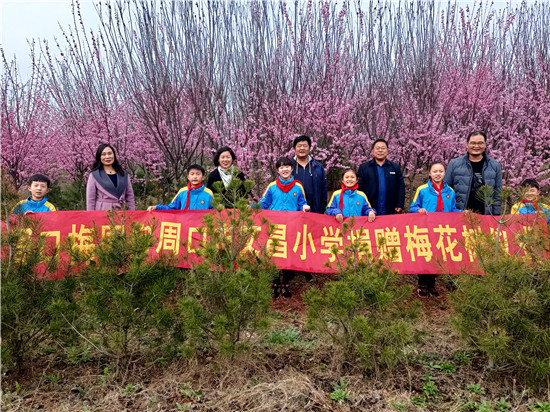 作為川匯區(qū)政協(xié)委員,李萌熱衷于公益事業(yè),尤其對(duì)周口的教育事業(yè)情有獨(dú)鐘。植樹(shù)節(jié)前的一天,李萌結(jié)識(shí)了文昌小學(xué)校長(zhǎng)朱剛偉。交流中,李萌了解到文昌小學(xué)校園中三季有花,唯獨(dú)春初缺景,朱剛偉又注重學(xué)生的品德教育,于是決定以周口梅園的名義向周口市文昌小學(xué)捐贈(zèng)品種梅樹(shù)100株,也以此寓意習(xí)近平總書記鼓勵(lì)后輩經(jīng)常引用的“梅花香自苦寒來(lái)”的格言送給學(xué)校的小朋友們。