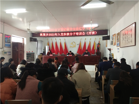 為切實(shí)做好入黨積極分子培養(yǎng)教育工作,提升入黨積極分子的思想政治素質(zhì),3月10日下午,鄲城縣秋渠鄉(xiāng)舉辦2021年入黨積極分子培訓(xùn)會(huì),全鄉(xiāng)108名入黨積極分子參會(huì)。鄉(xiāng)黨委書記梁輝參加開班儀式并講話。