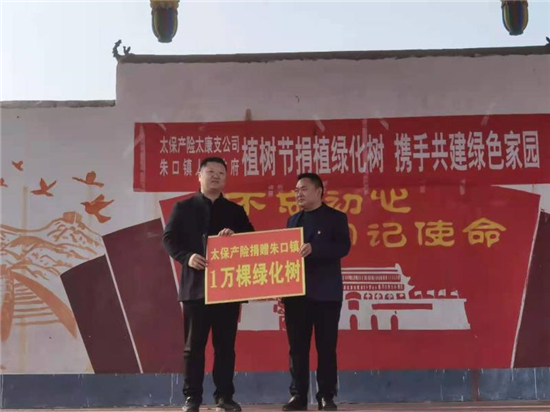 “這楸樹(shù)作為行道綠化,真不賴,現(xiàn)在栽上澆點(diǎn)水就能活……”在太康縣朱口鎮(zhèn)周寨村參加捐贈(zèng)儀式的洼陳村村民代表張紅飛說(shuō)。3月12日,植樹(shù)節(jié)當(dāng)日,太康縣朱口鎮(zhèn)與太平洋保險(xiǎn)財(cái)產(chǎn)保險(xiǎn)公司周口支公司在周寨村舉行了“植樹(shù)節(jié)捐植綠化樹(shù),攜手共建綠色家園活動(dòng)”,太平洋保險(xiǎn)財(cái)產(chǎn)保險(xiǎn)公司為朱口鎮(zhèn)捐贈(zèng)綠化樹(shù)10000棵,助力朱口鎮(zhèn)建設(shè)綠色家園。太平洋保險(xiǎn)公司周口支公司總監(jiān)豆威、總經(jīng)理趙磊和鎮(zhèn)長(zhǎng)江海洋等出席了會(huì)議,全鎮(zhèn)52個(gè)村黨支部書(shū)記、100多名群眾代表參加了會(huì)議。