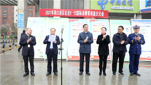 市市場監(jiān)管局二級高級主辦趙學軍,港區(qū)黨委委員、紀委書記李素芹出席活動。港區(qū)榮獲2020年度周口市“文明誠信經(jīng)營示范商戶”代表,港直相關(guān)單位、李埠口鄉(xiāng)政府負責人,港區(qū)醫(yī)院等企業(yè)組織方隊,市市場監(jiān)管局港區(qū)分局全體同志,周口日報社等新聞單位以及前來參觀的消費者們參加了紀念大會?;顒哟髸?,港區(qū)分局副局長趙珂回顧總結(jié)了2020年全區(qū)消費者權(quán)益保護工作,對2021年“3.15”活動期間的消費維權(quán)工作作了安排?! ?/p>