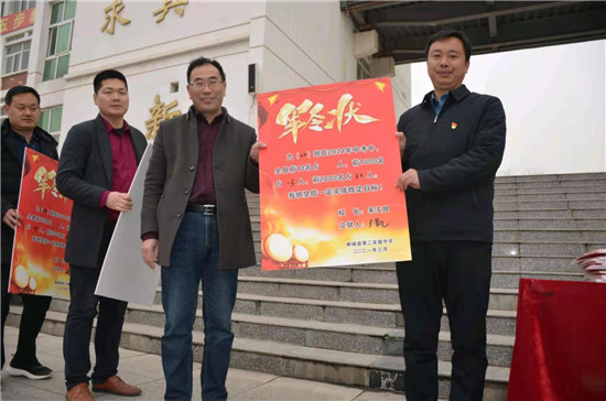 胡健康在講話中肯定了該校各項工作取得的成績,并就2021年中招提出新的希望和目標,希望第二實驗中學在2021年中招中能突破新的高度,贏得新的肯定,取得新的成績,打好翻身仗,再創(chuàng)新輝煌。